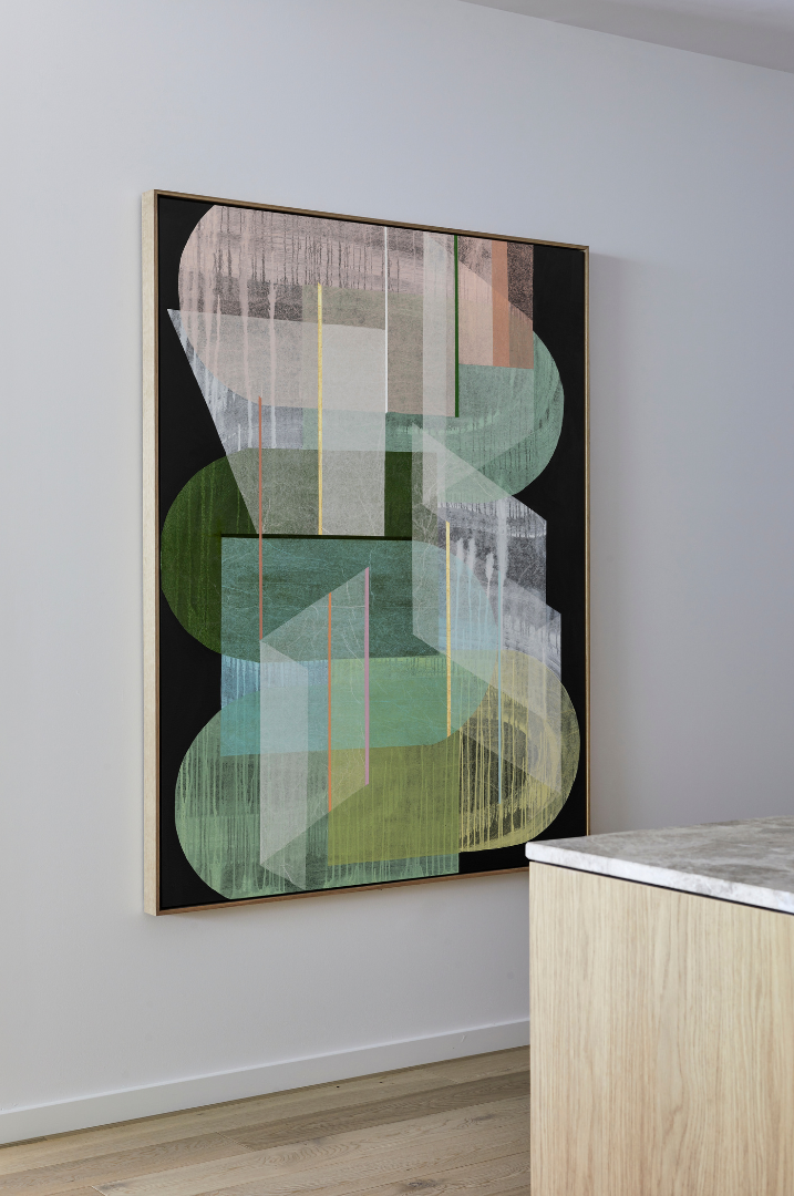 For the past 4 years, Ferwerda has been working with Lowe Living projects delivering unique art and artwork experiences for residents and visitors alike. The Hampton Hill exhibition features original paintings depicting voluptuous flowers and stormy oceans. Flowers bloom with transparent organic petals brimming with wild activity in and wild gestural strokes depict stormy seas with graphic modes of abstraction. Ferwerda achieves a level of technical virtuosity in resolving the challenge of working with mixed media and creates a point of harmonious resolution where transparency and translucency are represented as contrasting aesthetic elements.