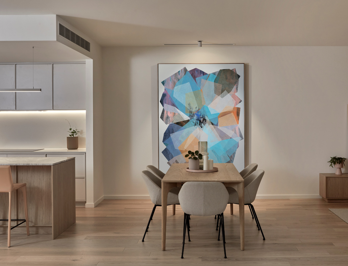Fine artist Antoinette Ferwerda has collaborated with Lowe Living at Hampton Hill with an exhibition of original paintings honouring Bayside gardens and coastal conditions. Enter the minimal clean lines of the Hampton Hill street entrance where the aperture changes from dark to light and the courtyard blends seamlessly with the corridor of art.
