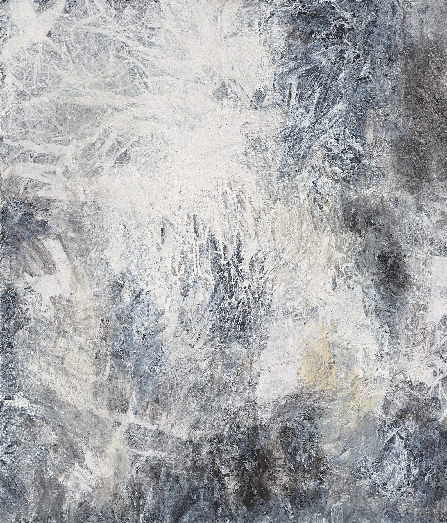 Synthetic polymer paint, ink, spray paint and collage with UV gloss varnish on canvas