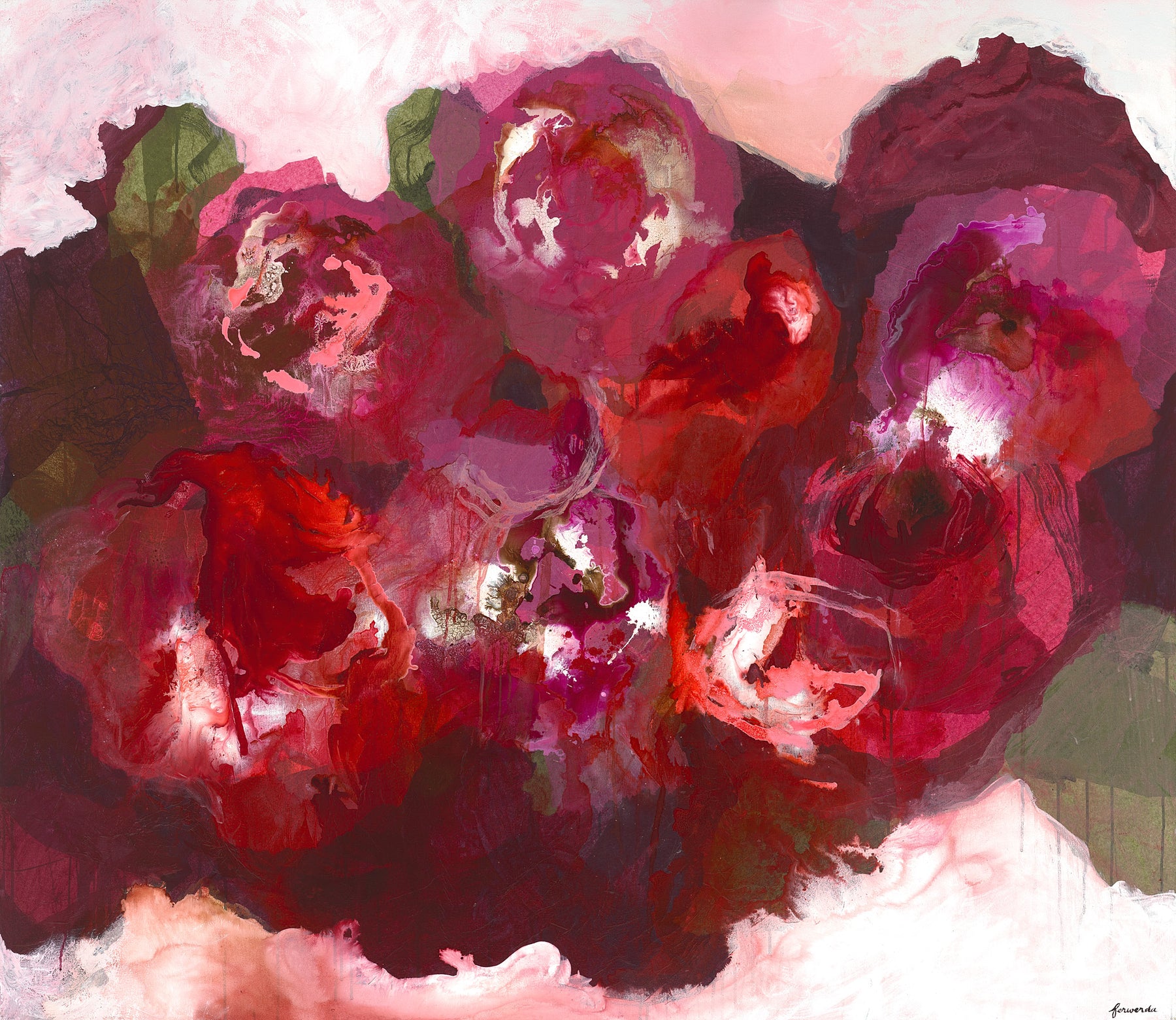 A visceral bloom of crimson, rose, and plum tones, this work evokes an emotional intensity through layered texture, gestural brushwork, and rich contrast. Expressive abstraction meets organic form in Truly Madly Deeply, inviting feelings of passion, devotion, and vulnerability. Aesthetically sophisticated, it balances chaos and control, evoking deep connection and timeless beauty. This emotionally resonant piece is a collectible asset and ideal for loyal collectors or investors seeking high-impact, emotionally engaging work.