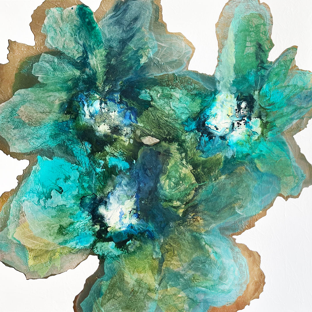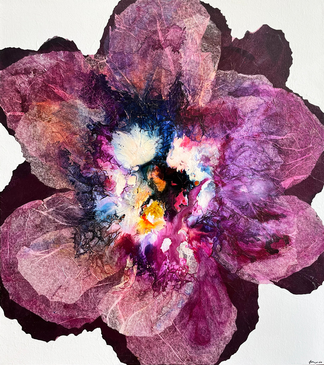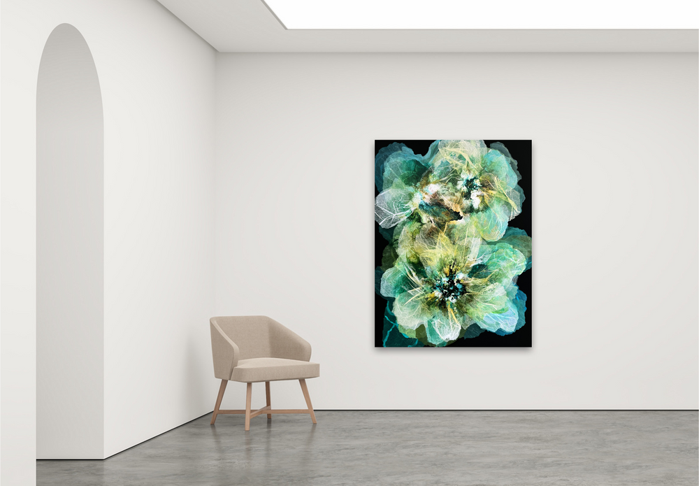 So, my Champagne Poppy paintings attempt to emulate the dancing of these petals and the living form, so the blooms seem to explode from the canvas.