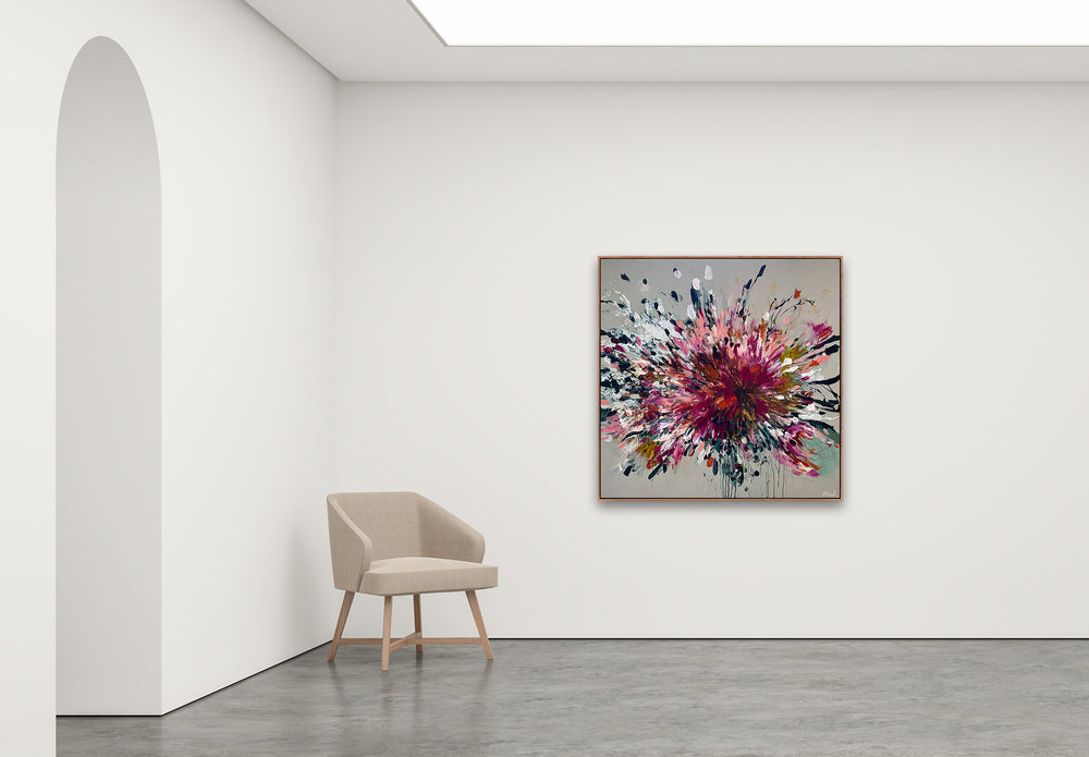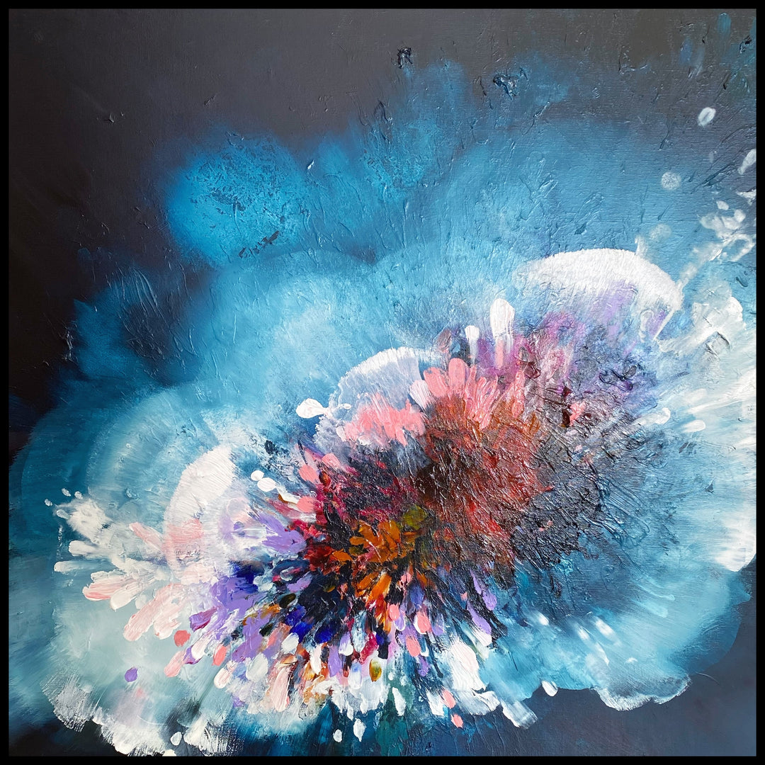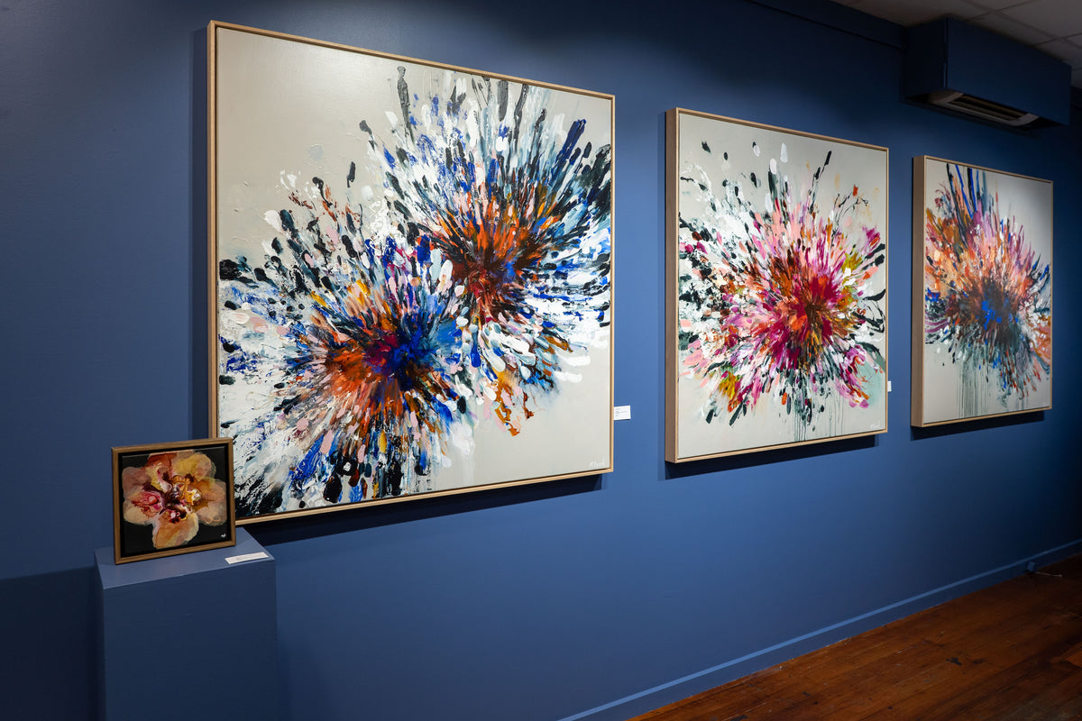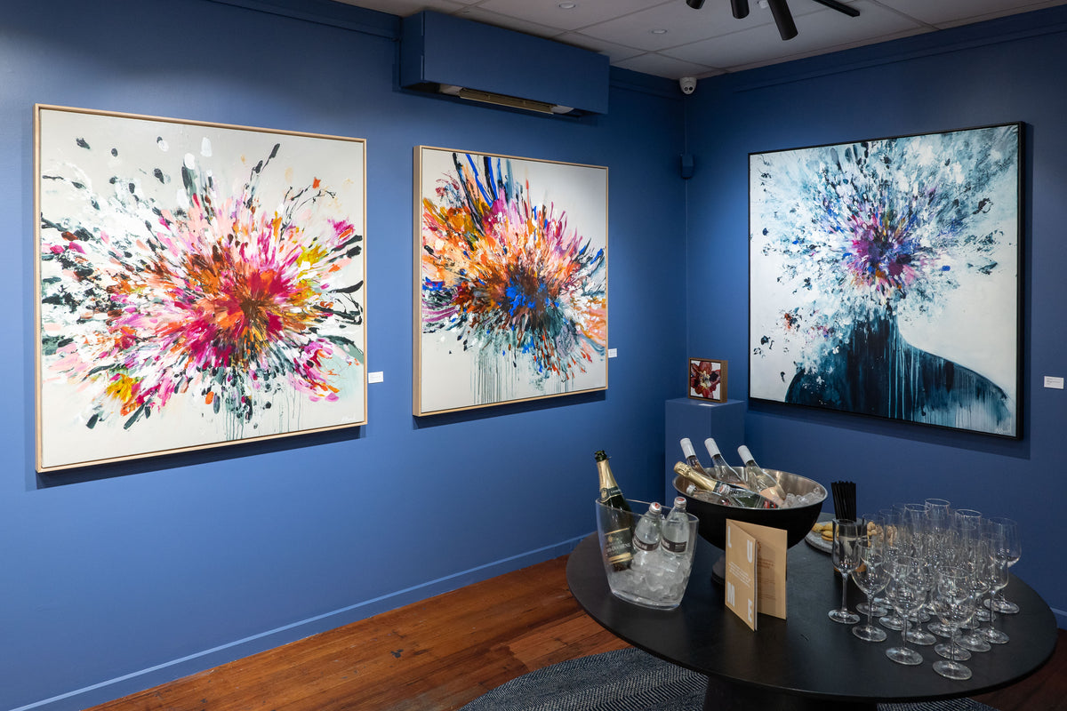 “The composition of my painting directs the colour of my artwork, and my intuition tells me whether it needs to be subdued, loud, moody, or playful.”