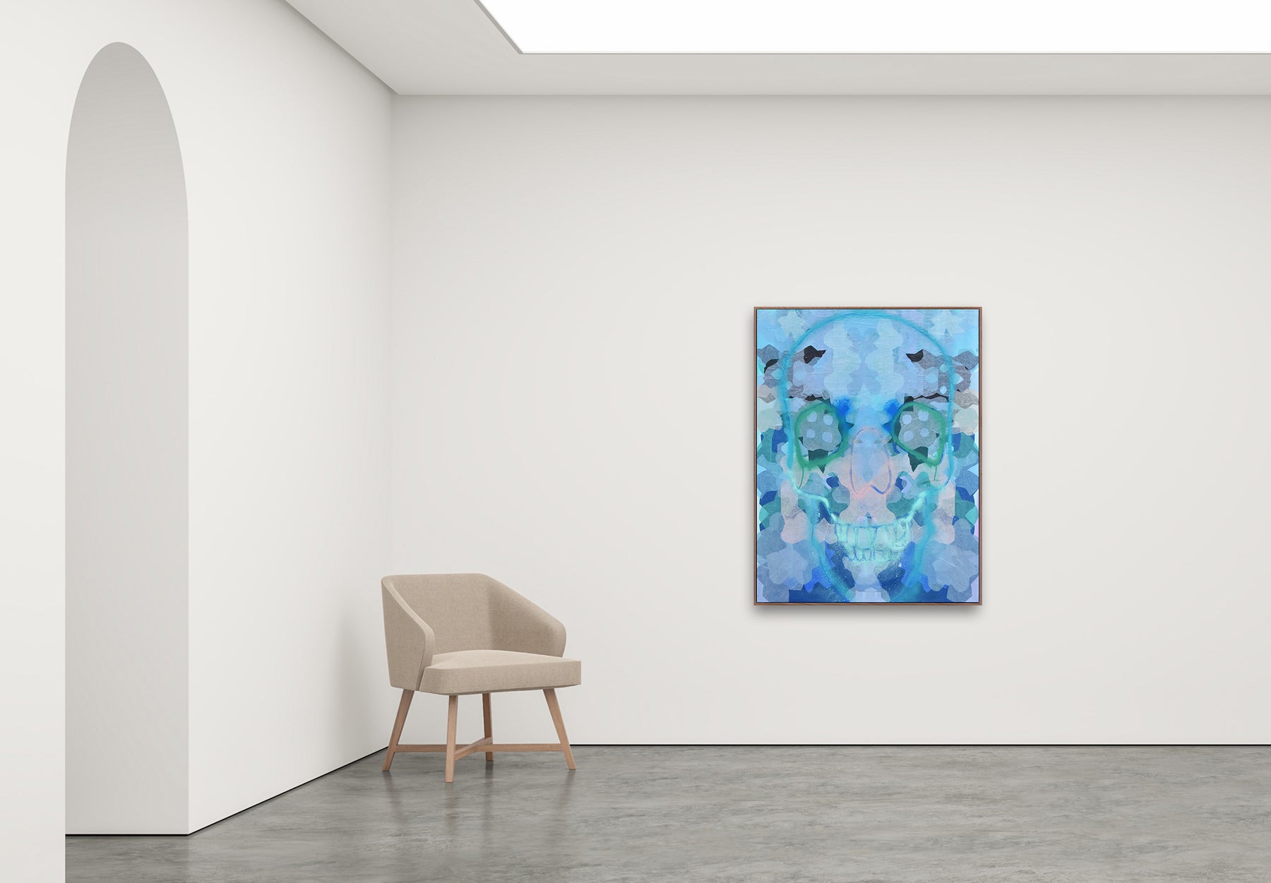 The overlapping shapes shimmer like reflections rippling across a pond, giving the work both depth and movement. The skull becomes luminous and life-affirming, a reminder of resilience and unity. Through its transparency and rhythm, the piece evokes a meditative space where fragility and strength exist together.