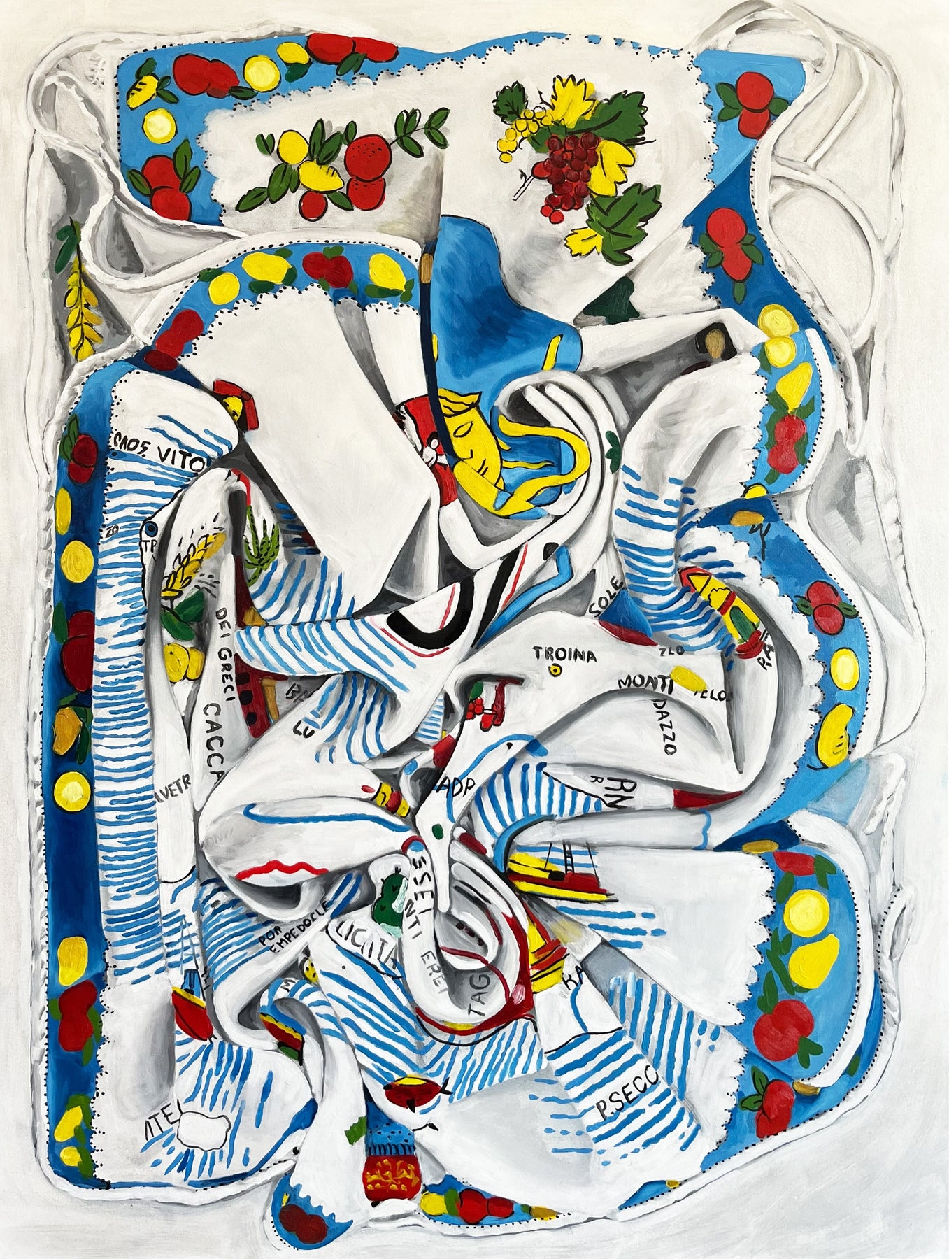 Nonna’s Apron (Scrunched) captures a tender memory caught in motion, where colour, texture and heritage fold into one another. Erica D’Ali renders a once-familiar kitchen apron with intricate care, drawing attention to the tactile, everyday symbols of a vanishing lineage. Using oil and acrylic on canvas, this richly layered work invites viewers to pause and honour the quiet rituals that shape identity. With its vibrant Mediterranean palette and sculptural detail, this original painting makes a beautiful beginning, or meaningful continuation, of a personal art collection.
